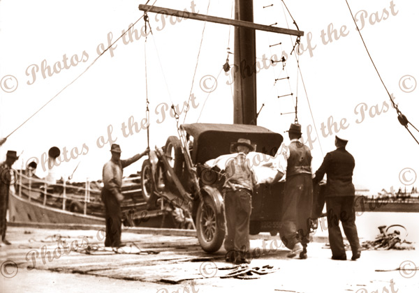 Loading Essex x 6 buck-board on SS KARATTA,Pt Adelaide, SA. Dec 1946 South Australia