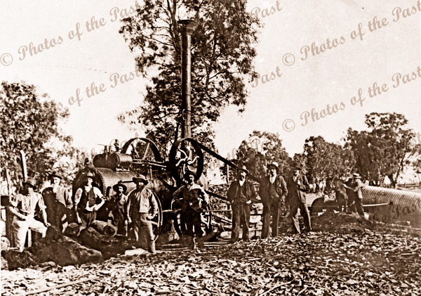 Workers at Mellool NSW with steam traction engine. c1890. quantity